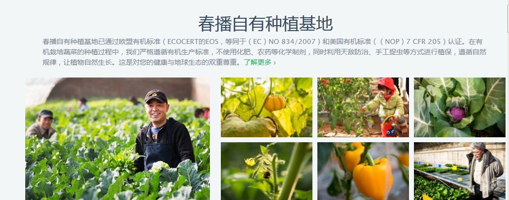 北京春播科技有限公司是一家集農(nóng)產(chǎn)品生產(chǎn)、冷鏈物流和電商銷(xiāo)售為一體,面向中高端消費(fèi)者及廣大顧客,實(shí)現(xiàn)農(nóng)產(chǎn)品由田間直達(dá)餐桌,為顧客提供安全、健康、新鮮、美味的優(yōu)質(zhì)食材,以及快捷的購(gòu)買(mǎi)服務(wù)、全行業(yè)服務(wù)鏈的互聯(lián)網(wǎng)生鮮電商公司。春播從創(chuàng)辦之初就頒布了春播標(biāo)準(zhǔn),視食品安全為生命線,也將以打造安心健康食品的信任消費(fèi)生態(tài)為已任,企業(yè)的使命是希望借力于互聯(lián)網(wǎng)的透明、溯源和用戶參與度,聯(lián)合各路優(yōu)秀農(nóng)人以及全球優(yōu)質(zhì)