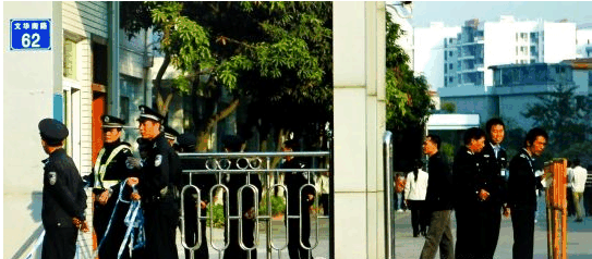 工人們聚集在廠門口、文華南路,或坐或站,沒有過激言行。停工行為引來大批警力,下午3時許,包括治安民警、公安特警等數(shù)十警員荷槍實彈在現(xiàn)場警戒,公司廠區(qū)一座二樓的樓頂也設置了崗哨。