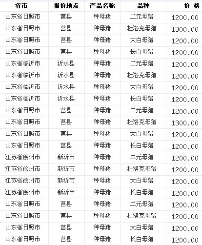 2012年6月12日全國(guó)生豬(土雜豬)價(jià)格動(dòng)態(tài)