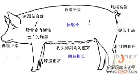 許多特征都可以用來評估后備母豬的好壞(如圖)