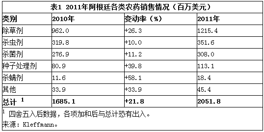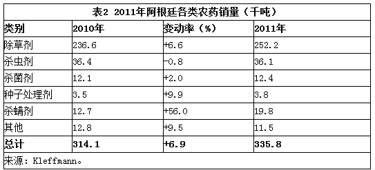 2011年阿根廷農(nóng)化市場(chǎng)強(qiáng)勁增長(zhǎng)22%