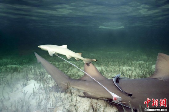 一只檸檬鯊在巴哈馬加勒比海一代生下小鯊魚,感謝攝影師給我們帶來的難得一見的畫面。