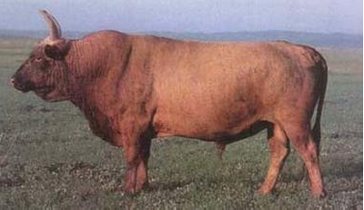 產(chǎn)于內(nèi)蒙古高原地區(qū)。蒙古牛體格大小中等,毛色以黃褐色及黑色居多,其次為紅白色或黑白花。頭短寬而粗重,額稍凹陷,角向上前方彎曲,角質(zhì)細(xì)致,頸短而薄,肉垂小,甲低平,背腰平直,尻部傾斜,四肢粗壯,蹄質(zhì)堅(jiān)實(shí)。成年公牛平均體重為350千克,母牛為300千克。