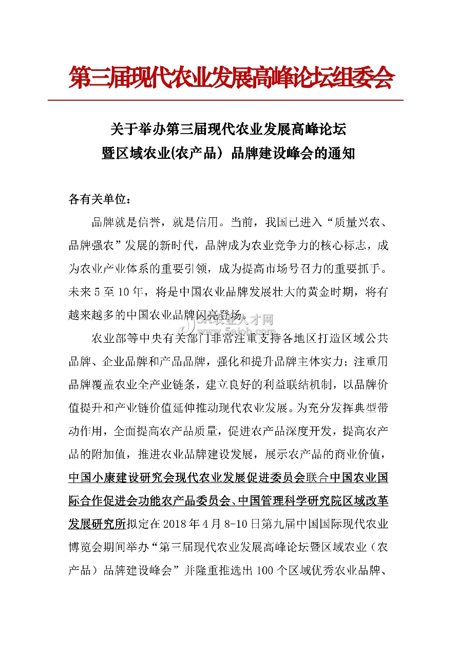 第三屆現(xiàn)代農(nóng)業(yè)發(fā)展高峰論壇-暨區(qū)域農(nóng)業(yè)(農(nóng)產(chǎn)品)品牌建設(shè)峰會(huì)通知