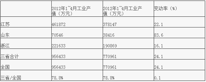 工業(yè)總產(chǎn)值同比增長22.2%今年1~4月份我國化學(xué)農(nóng)藥現(xiàn)價(jià)工業(yè)總產(chǎn)值為740.35億元,去年同期605.70億元,同比增長22.2%。排在前三位的分別是江蘇、山東和浙江,三省的工業(yè)總產(chǎn)值和為454.11億元,三省產(chǎn)值和占全國總產(chǎn)值的61.3%。
