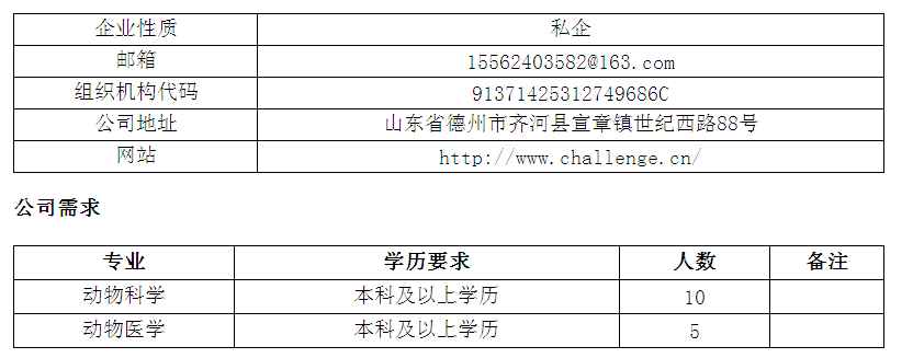 山東挑戰(zhàn)飼料科技有限公司2017校園招聘信息