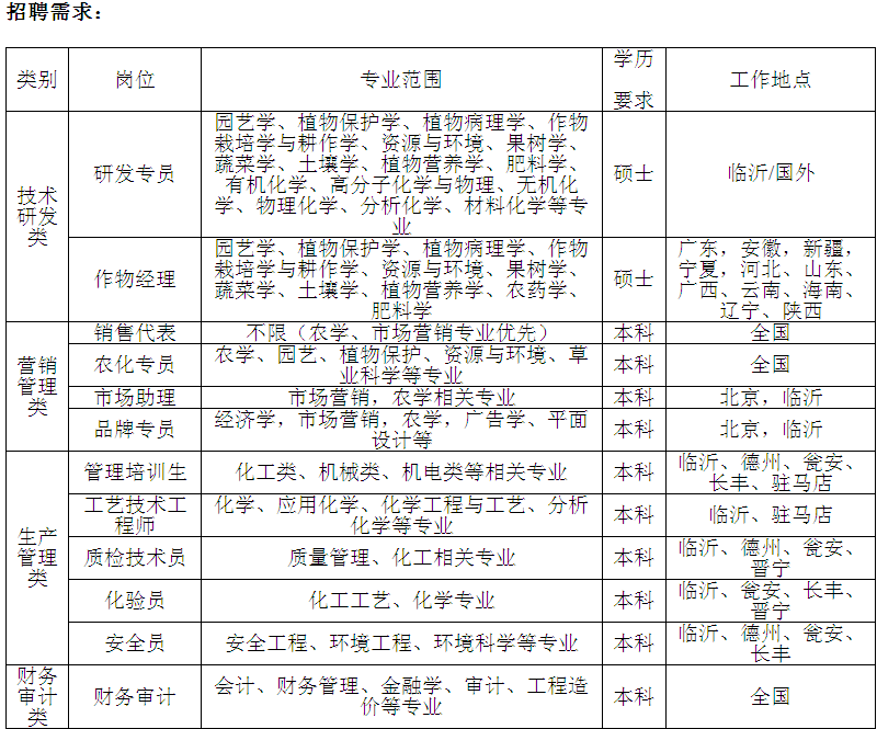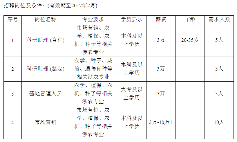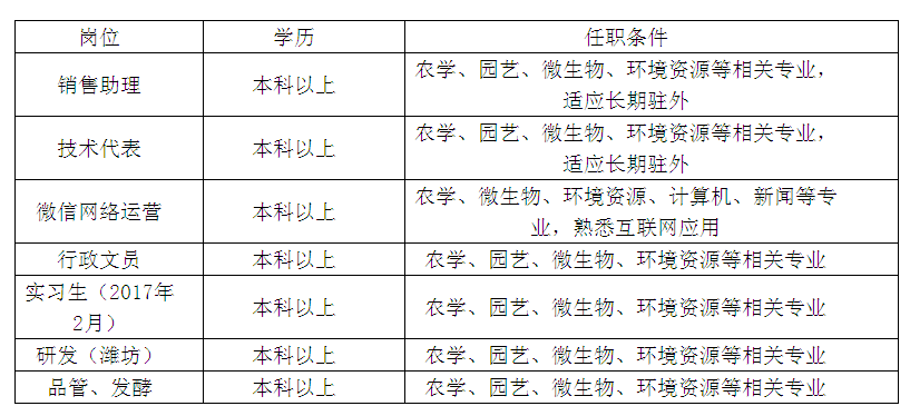 山東漢光農業(yè)科技股份有限公司2017校園招聘信息