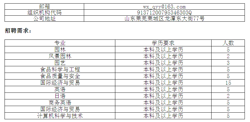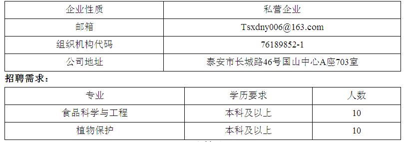 泰安市泰山現代農業(yè)科技公司2017校園招聘信息