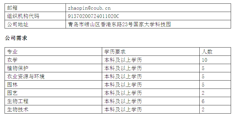 青島海大生物集團有限公司2017校園應屆畢業(yè)生招聘信息