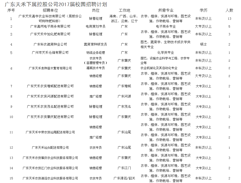 廣東天禾農資股份有限公司2017屆校園招聘招生簡章