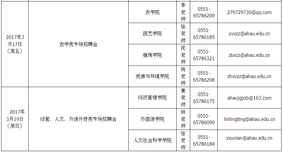 安徽農(nóng)業(yè)大學(xué)2017屆畢業(yè)生就業(yè)專場招聘會(huì)安排表