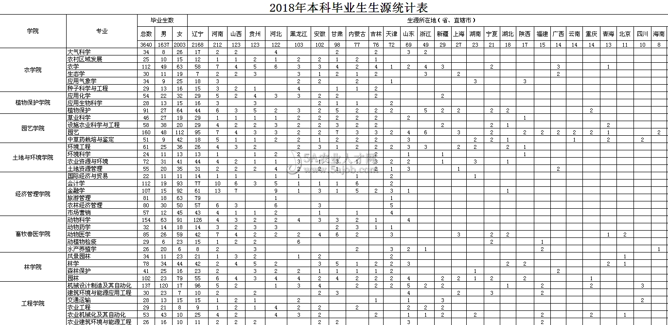 沈陽農(nóng)大2018年本科畢業(yè)生生源統(tǒng)計(jì)表