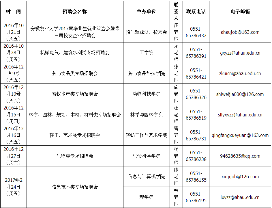 安徽農(nóng)業(yè)大學(xué)2017屆畢業(yè)生就業(yè)專場(chǎng)招聘會(huì)安排表
