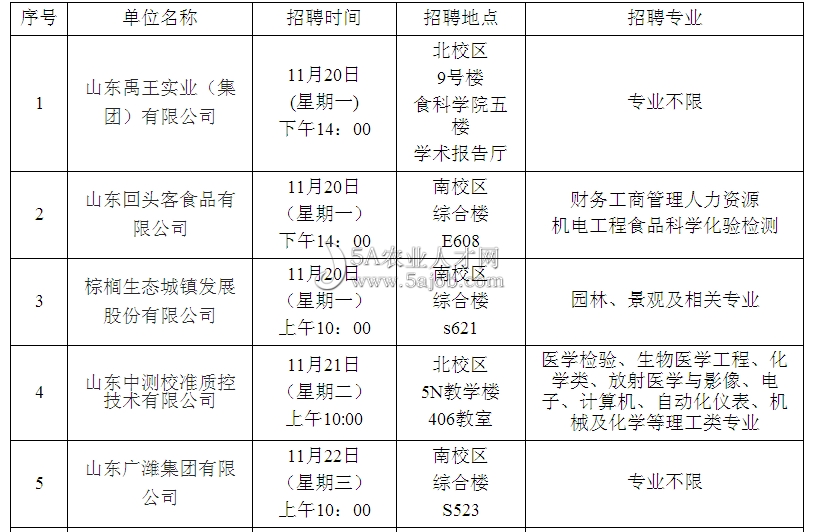 山東農(nóng)業(yè)大學(xué)第十三周專場(chǎng)招聘會(huì)匯總(隨時(shí)更新)