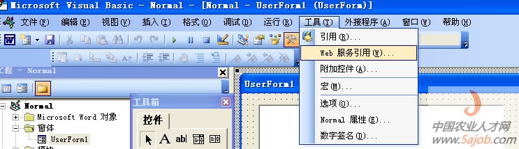 安裝完畢,后打開(kāi)word>> 工具>>宏>>Visual Basic編輯器>>工具>>WEB服務(wù)引用
