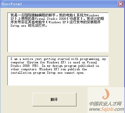 運(yùn)行后,在textbox1中輸入中文,點(diǎn)翻譯按鈕,結(jié)果如textbox2所示。